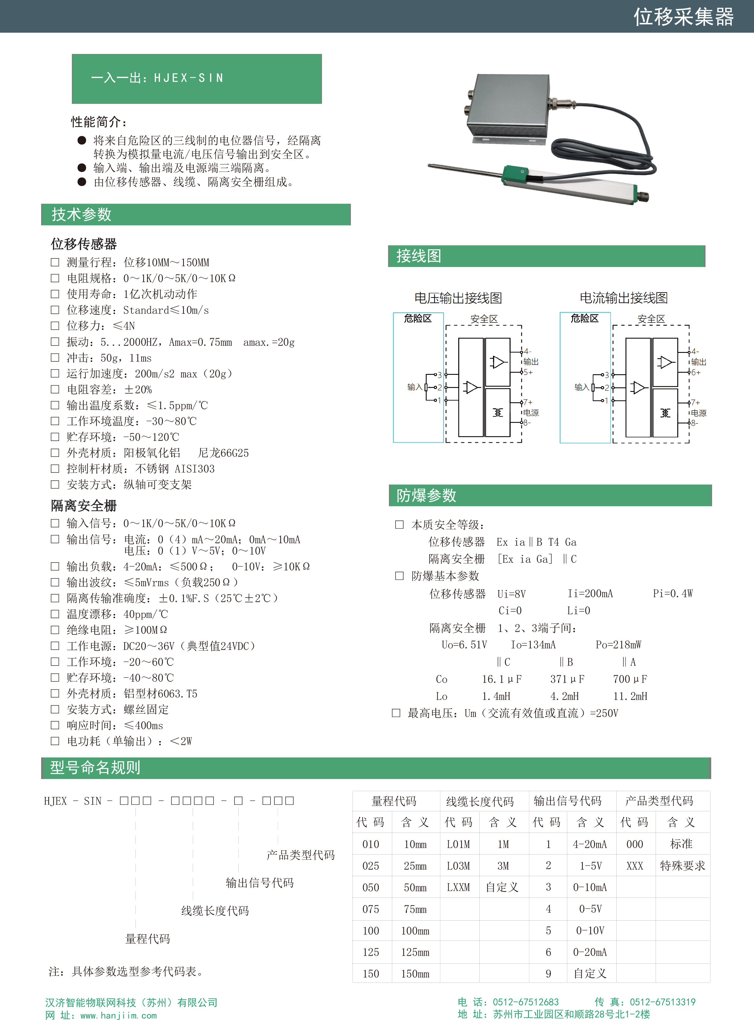 將來自危險區的三線製的電位(wèi)器信號,經隔離轉換為模擬量(liàng)電流/電壓信號輸出到安全區。 輸(shū)入端、輸出端及電源端三端隔離。 由位移傳(chuán)感器、線纜、隔(gé)離安全柵組成
