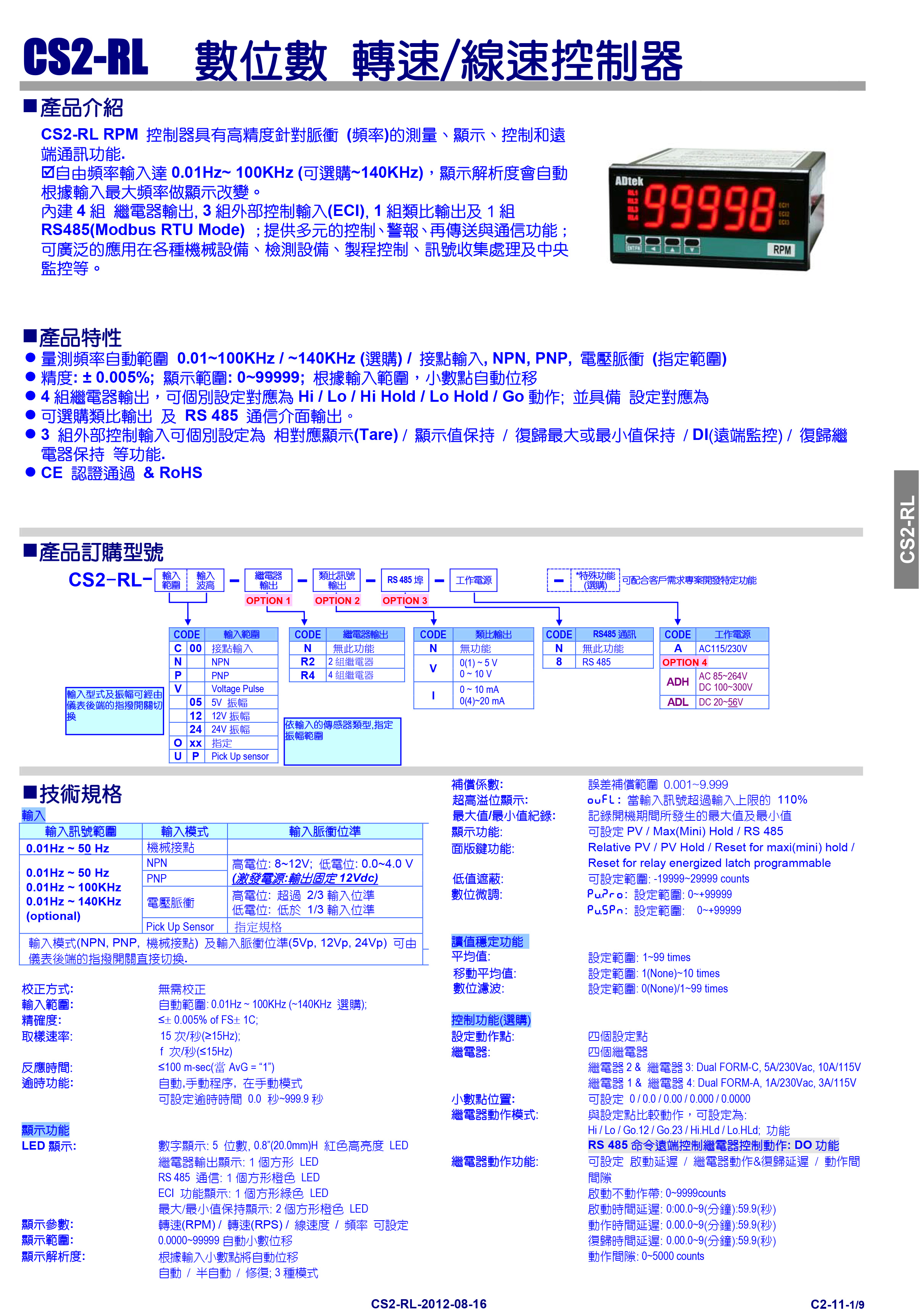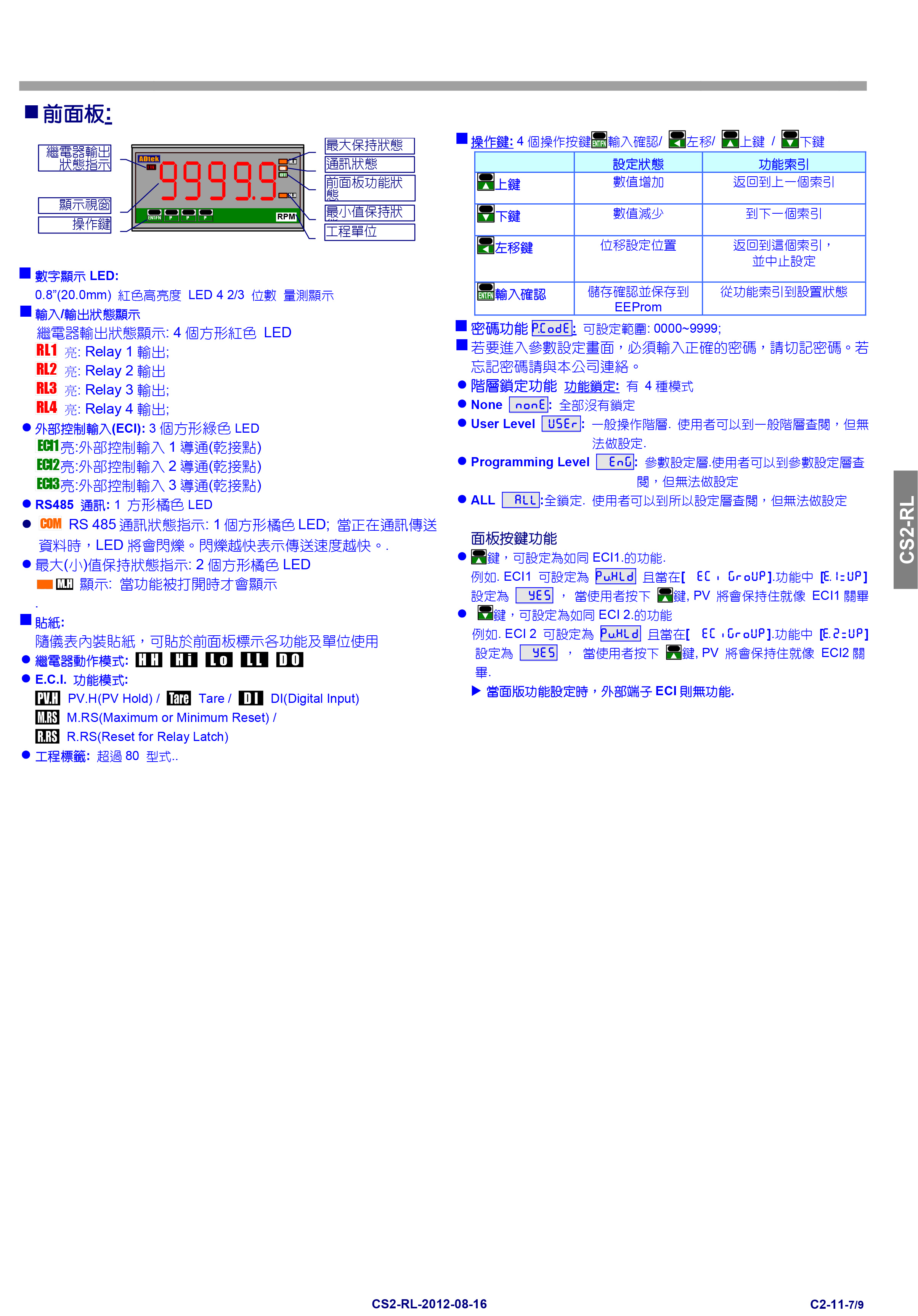 台灣ADTEK銓盛 CS2-RL顯示控製儀表
