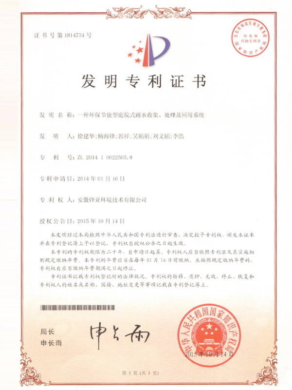 一種環保節能型(xíng)庭院式雨水收集、處理及回用係統