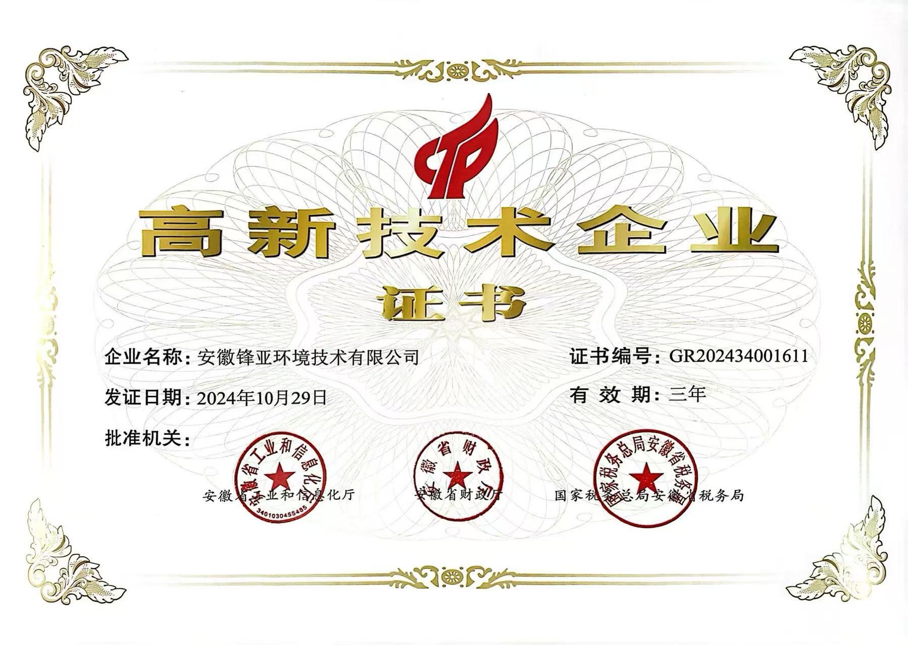 高新技(jì)術企業證書