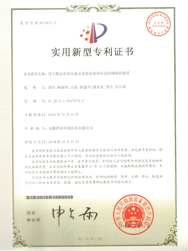 用於微富營養化城市景觀水體的應急除(chú)磷吸附(fù)裝置